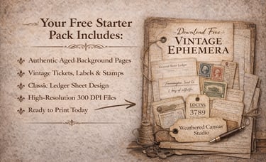 Vintage ephemera & printable journal kits for junk journals, scrapbooks, and creative paper artists.